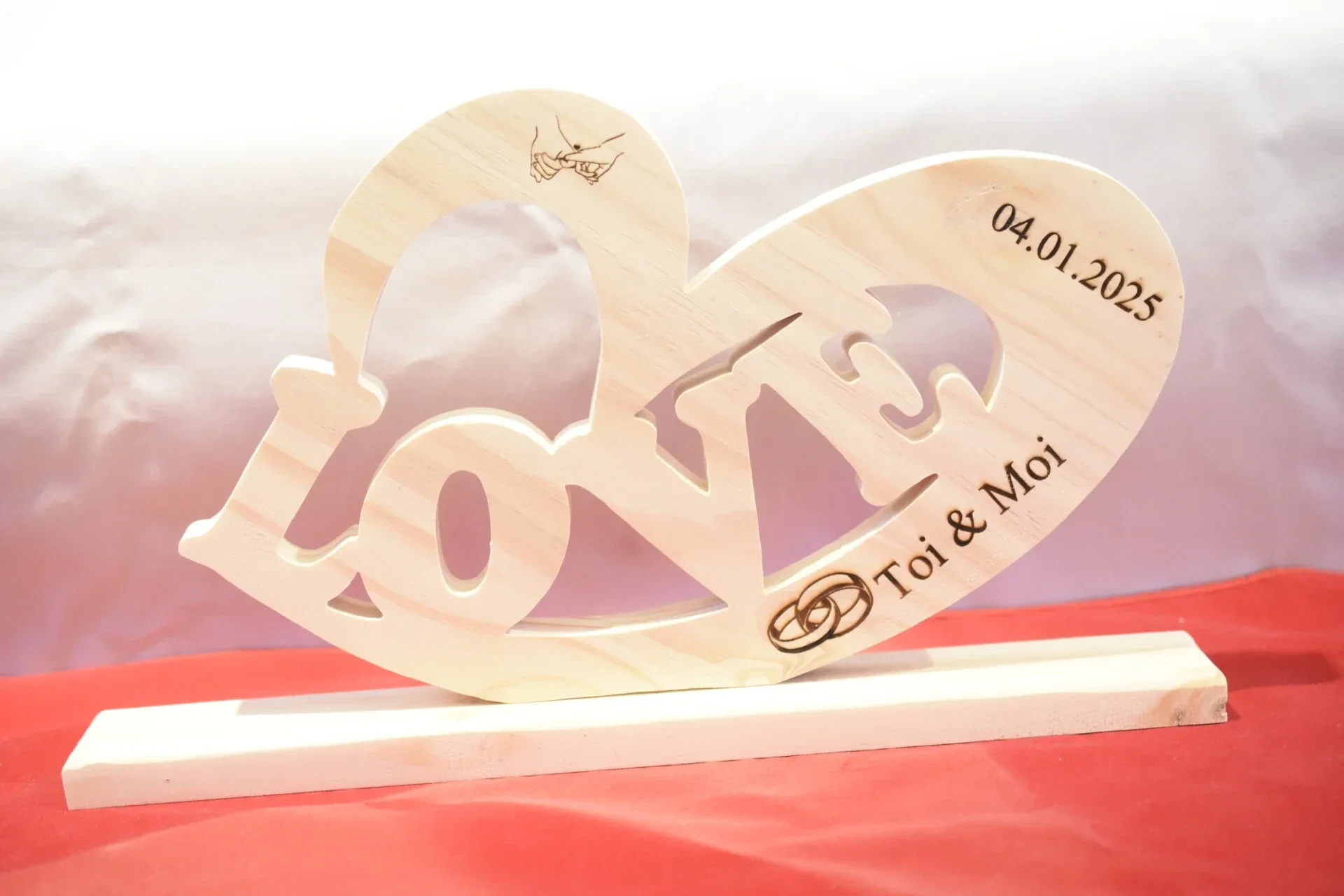 Donnez du relief à vos tables avec nos créations artisanales. Chaque pièce en Oukoumé de 10 mm est chantournée avec soin, puis personnalisée par gravure.